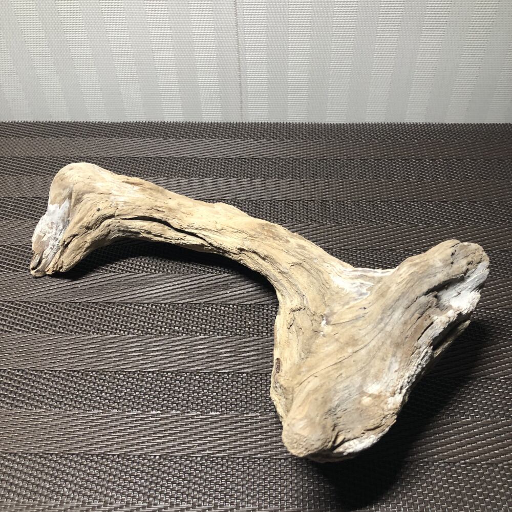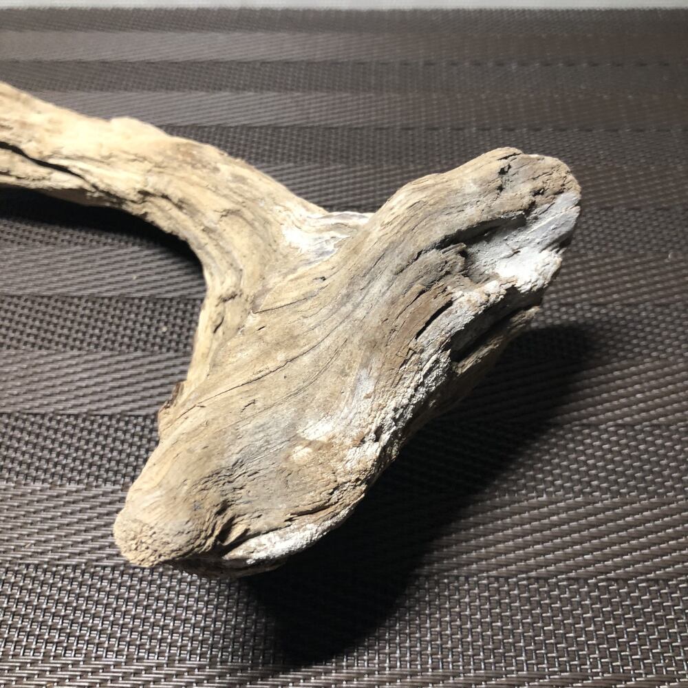 曲がりくねった流木。白く見えている所は”カビ”ではなく、脱色しています。